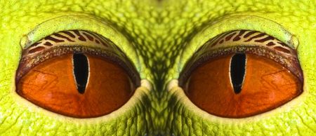 Close up of a green tree frog's eye. macro shot.