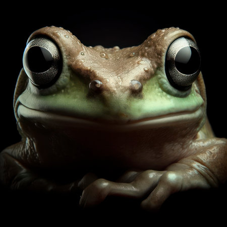 portrait of a frog isolated on black background with copy space. ai generative.