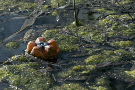 Green mud on the surface of the swamp, background. Swamp Elnya Belarus