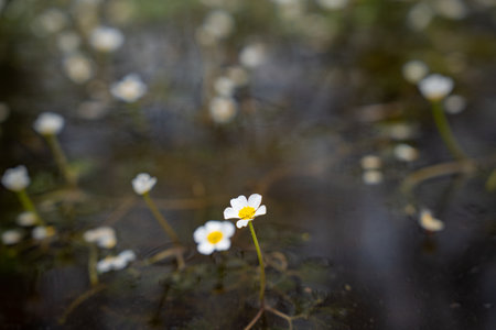 Flowering plant of the river water-crowfoot (Ranunculus fluitans)