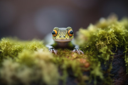 Rainforest dart frog camouflaged among the foliage, a natural master of disguise