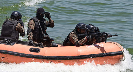 Special forces operators in the military kayak