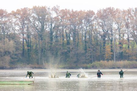 fishermen at harvesting pond, Czech Republic