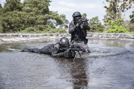Spec ops police officer SWAT in action in the water