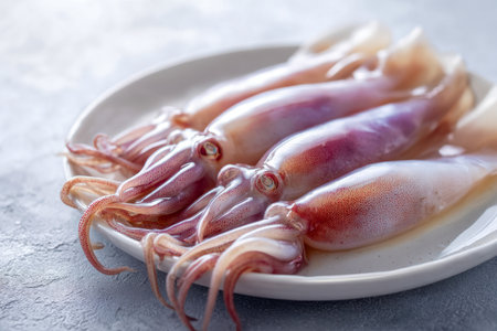 Fresh raw squid in white plate