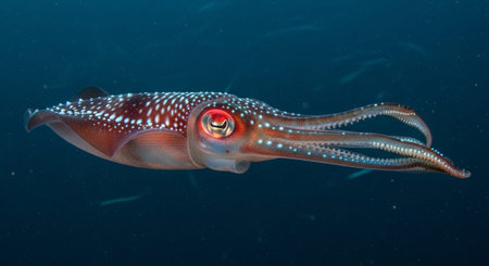 squid with colorful eyes swimming in water