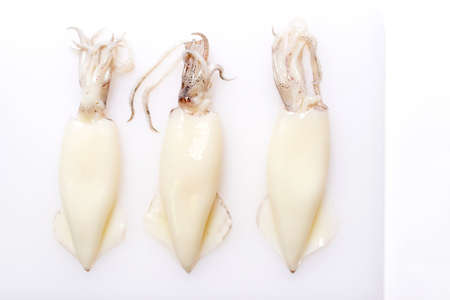 Fresh raw squid against a white background. Close-up.