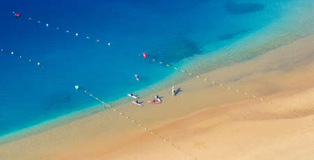 Aerial view of group of kayak in turquoise sea