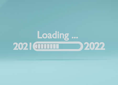 Loading from 2021 to 2022 of white letter on blue background with reflection for preparation merry Christmas and happy new year concept , 3D rendering technique.