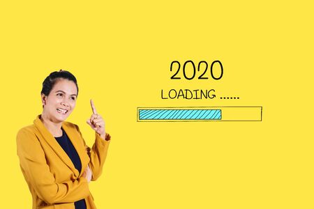 Loading new year 2020 with young woman.
