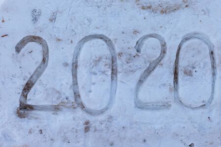 New year 2020 text on fresh white snow