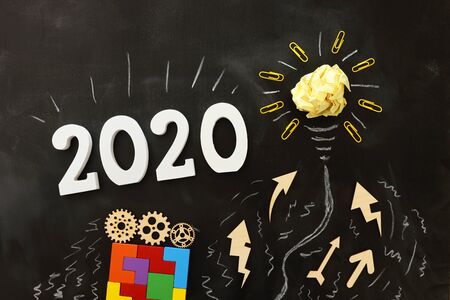Business concept, top view of blackboard with the phrase 2020