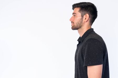 Portrait of handsome Young Asian Thai man in early 20s against white background