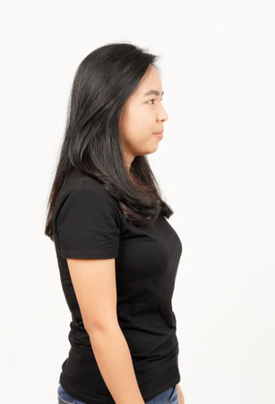 Side view standing of Beautiful Asian Woman Isolated On White Background