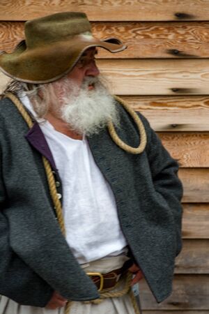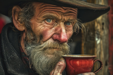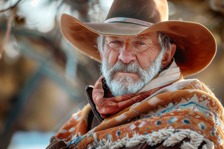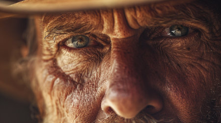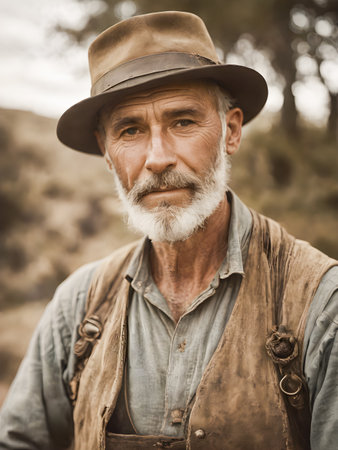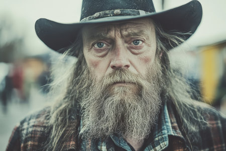 Intense portrait of an older man with a cowboy hat and rugged beard