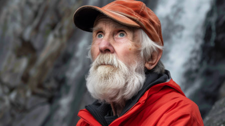 Portrait of an elderly man with hat and jacket outdoors in winter