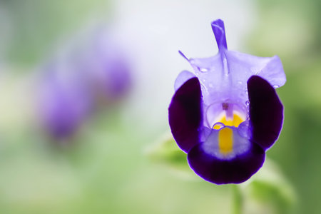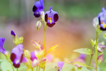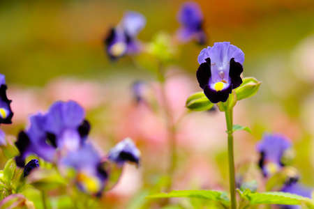 Torenia fournieri purple white flower and yellow pollen blooming in garden