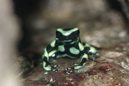 A captivating close-up of a sugar glider captured mid-flight against a blurred background. This adorable marsupial showcases its playful nature and agility as it leaps from a branch, emphasizing its large eyes and soft fur in a stunning wildlife moment.