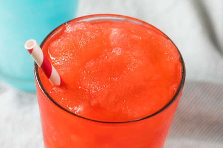 Frozen Red and Blue Slushies with Straws