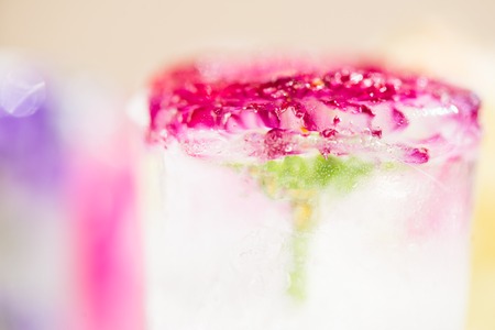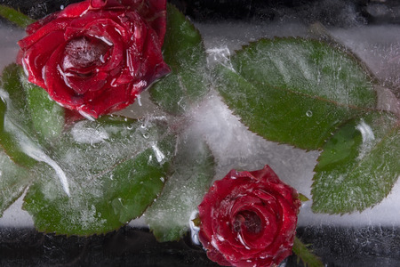 frozen flora, rose flower frozen into ice block