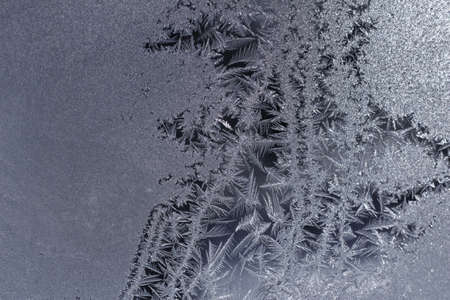 Frosty natural pattern on a winter window, texture of frosty patterns, dendritic image structure
