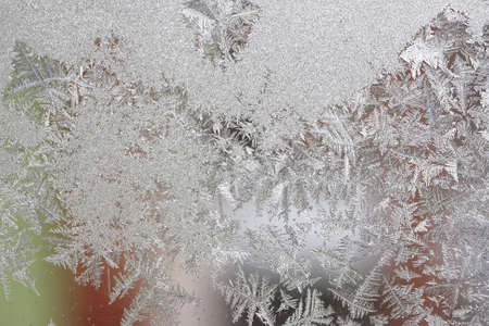 Winter pattern of frost on the window glass