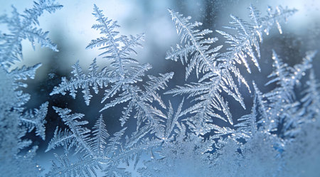 glittering frosty pattern on glass closeup