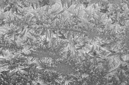 Frosty natural pattern on winter window glass. Abstract background.