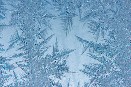 Frosty winter background, ice crystals on glass.