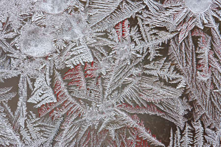 glass painted with bizarre frost patterns window texture on a frosty day