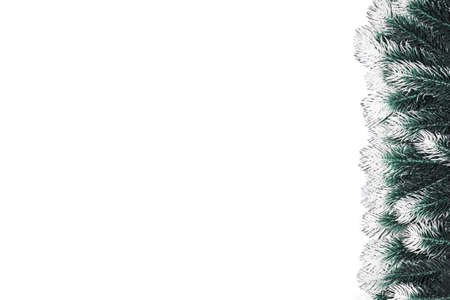 christmas decoration fir tree branches with snow on white background