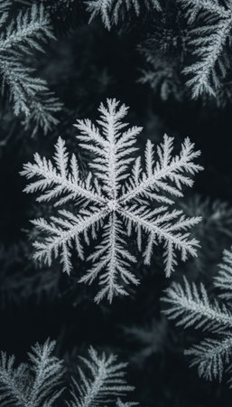 Delicate frost crystals catch soft light creating a magical winter scene. This enchanting display evokes the spirit of Christmas and New Year.