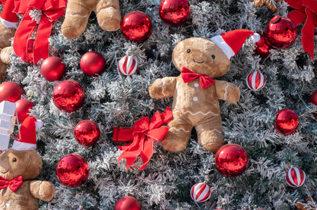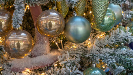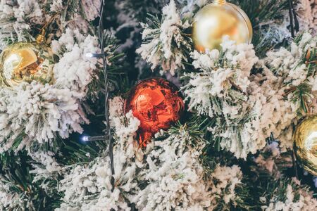 Group of ornaments decorated on Christmas tree during Christmas festival and New Year celebration.