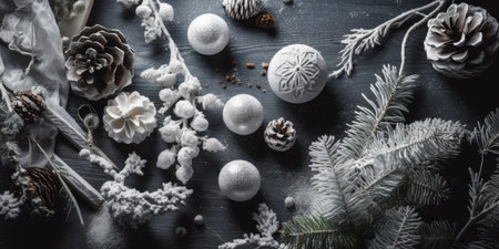 Festive, branding and season concept - Christmas tree decorations, baubles, bows and garlands as festive home decor, vintage greeting card for luxury holiday brand, flatlay design
