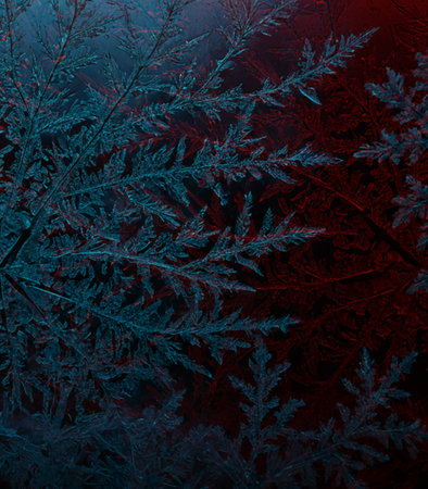 Delicate frost crystals catch soft light creating a magical winter scene. This enchanting display evokes the spirit of Christmas and New Year.
