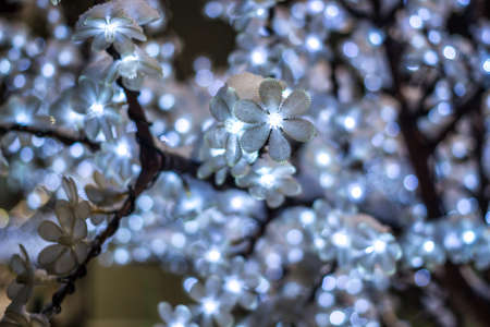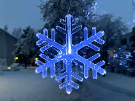New Year's illumination, decoration of the city, houses, sale of illumination for the holidays. Glowing holiday lights.
