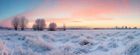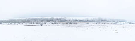 Panoramic view of the field on a snowy winter morning