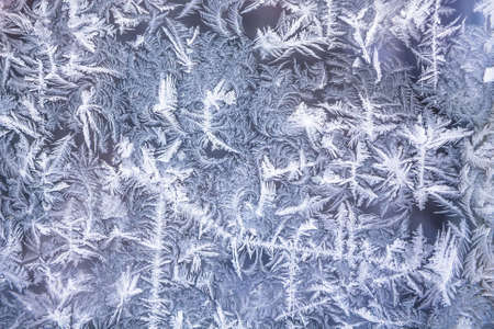 Frosty natural pattern on winter window glass. Abstract background.