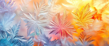 Frosty window pattern showcased in vibrant watercolor colors blending cool and warm tones