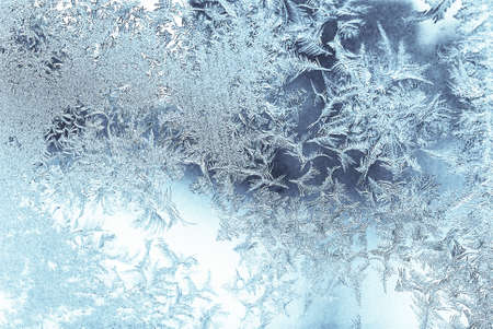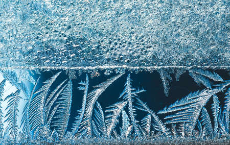 Frosty natural pattern on winter window glass. Abstract winter background