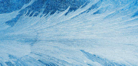 Winter ice pattern on the frozen window. Texture, background for inserting text. New Year theme. Winter. Cold.