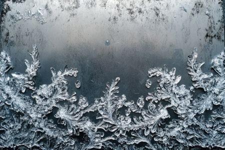 Delicate frost patterns form intricate designs on glass surfaces, capturing the beauty of winter mornings. The cool air enhances the stunning details, showcasing nature's artistry.