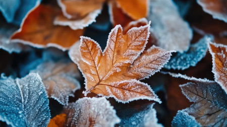 Detailed Frosted Autumn Leaves with Ice