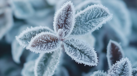Frosty Plant Leaves with Intricate Patterns Showcasing Nature s Cold Artistry in Winter s Embrace