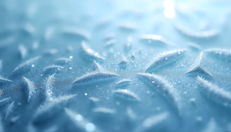 Macro View of Delicate Light Blue Frost Crystal Surface Texture Backdrop