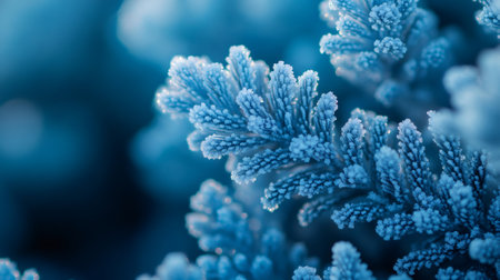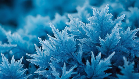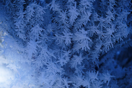 Close-up view of intricately ice crystals showing their delicate and beautiful structures. A stunning winter scene.