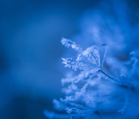 Winter frost on spruce christmas tree close-up .Shallow depth-of-field.