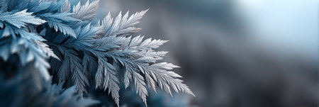 Close-up of two delicate frost-covered branches against a serene blue background. Winter wonderland vibes.