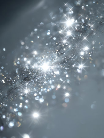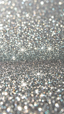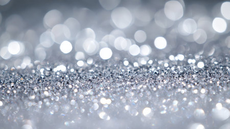 Sparkling silver glitter background featuring the glamorous bokeh effect for festive light compositions.
