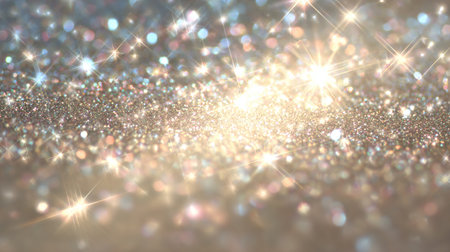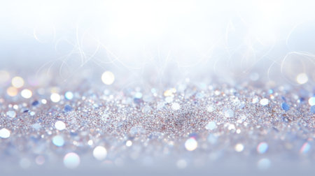 Blurred glitters shining white, silver and blue bright sparkle shimmering dust, copy space for text. Generative AI.